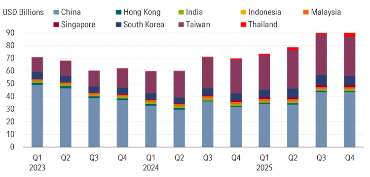 Source: Morningstar Direct. Data as of December 2025. Due to the unavailability of China's Q4 assets, we used third-quarter data as a proxy for fourth-quarter assets.